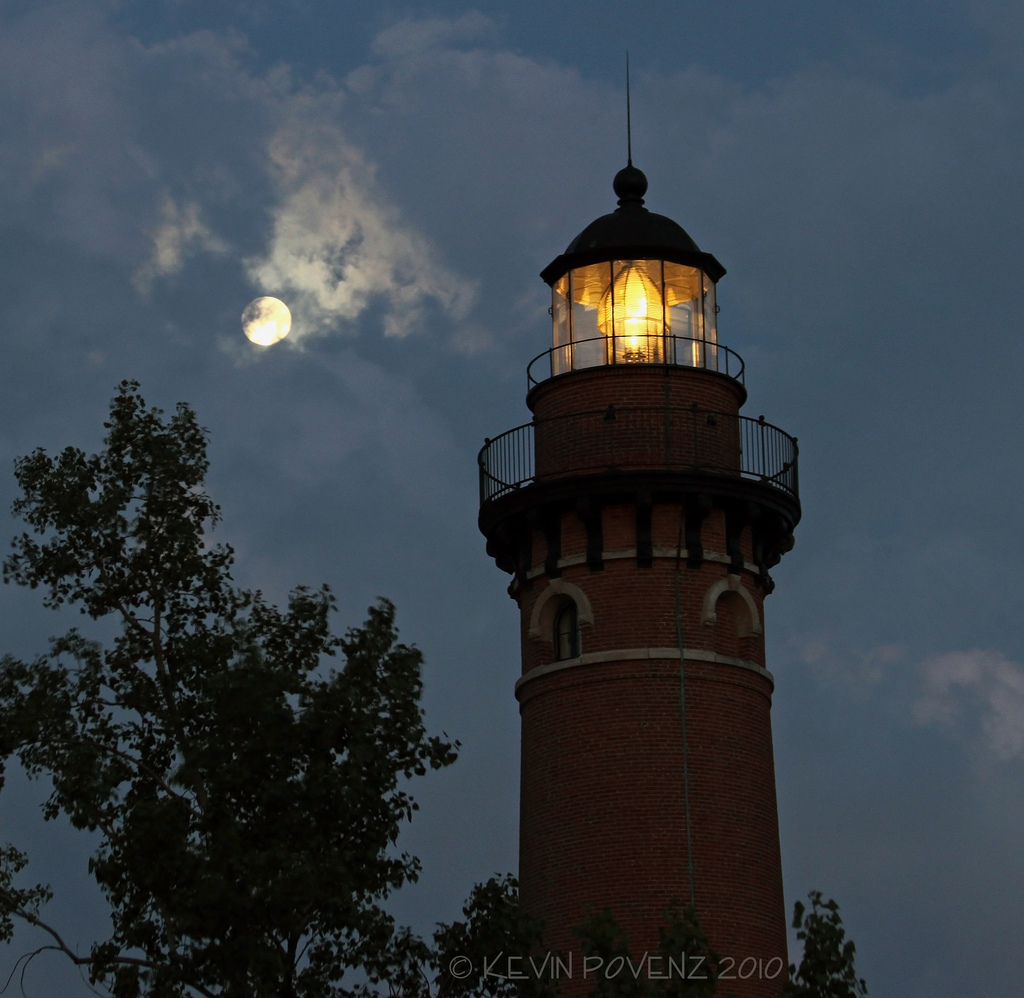night sky. A bright snow colored beacon of light is on guard