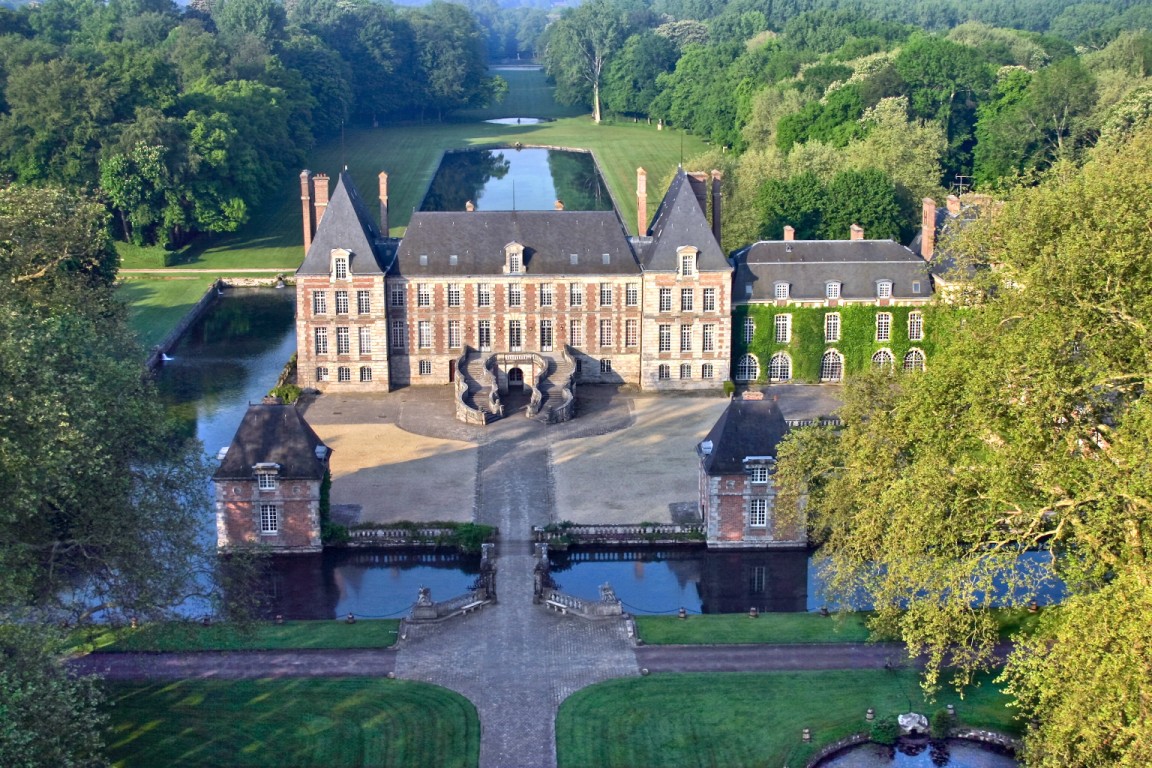 In 1552, Côme Clausse, a notary and royal secretary to the King, acquired from the Lapite family the former seigneurial dwelling at Courances, at the western edge of the Forest of Fontainebleau. His heir conveyed it in 1622 to Claude Gallard, another royal secretary, who is doubtless the builder of the present château, of an H-plan laid out on a rectangular platform that is surrounded by moat.